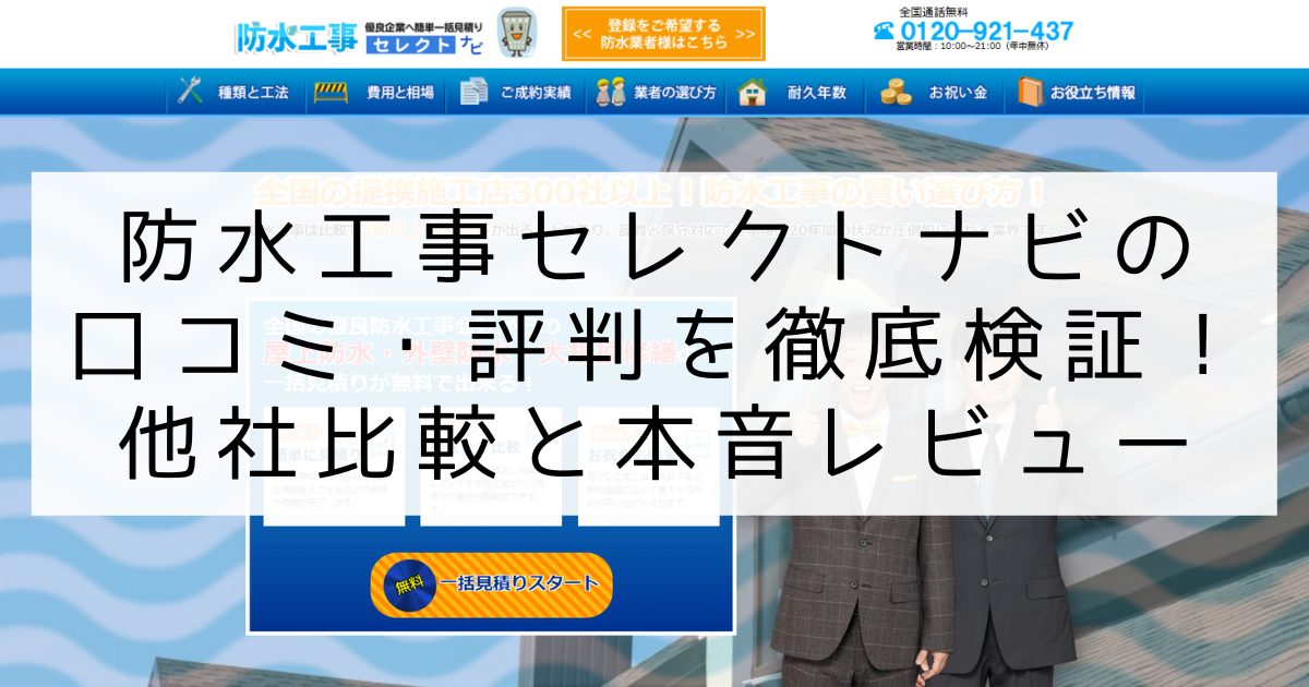 🗣 防水工事セレクトナビの口コミ評判まとめ