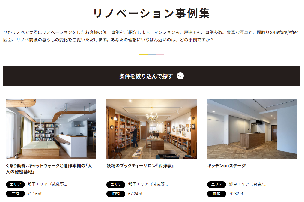 また、中古物件探しからリノベーション設計、住宅ローン手続きまでをワンストップで依頼できる利便性も高く評価されています。