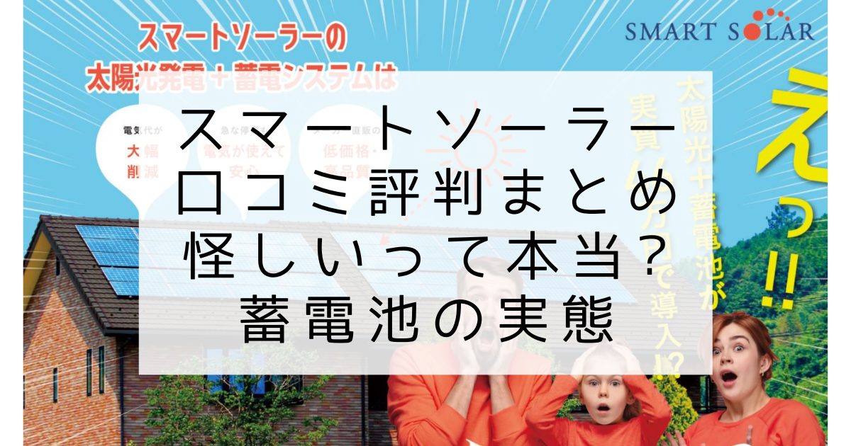 「スマートソーラーの口コミや評判ってどうなの?」「怪しいって検索候補に出るけど大丈夫?」 「蓄電池の実態や価格は本当にお得なの?」