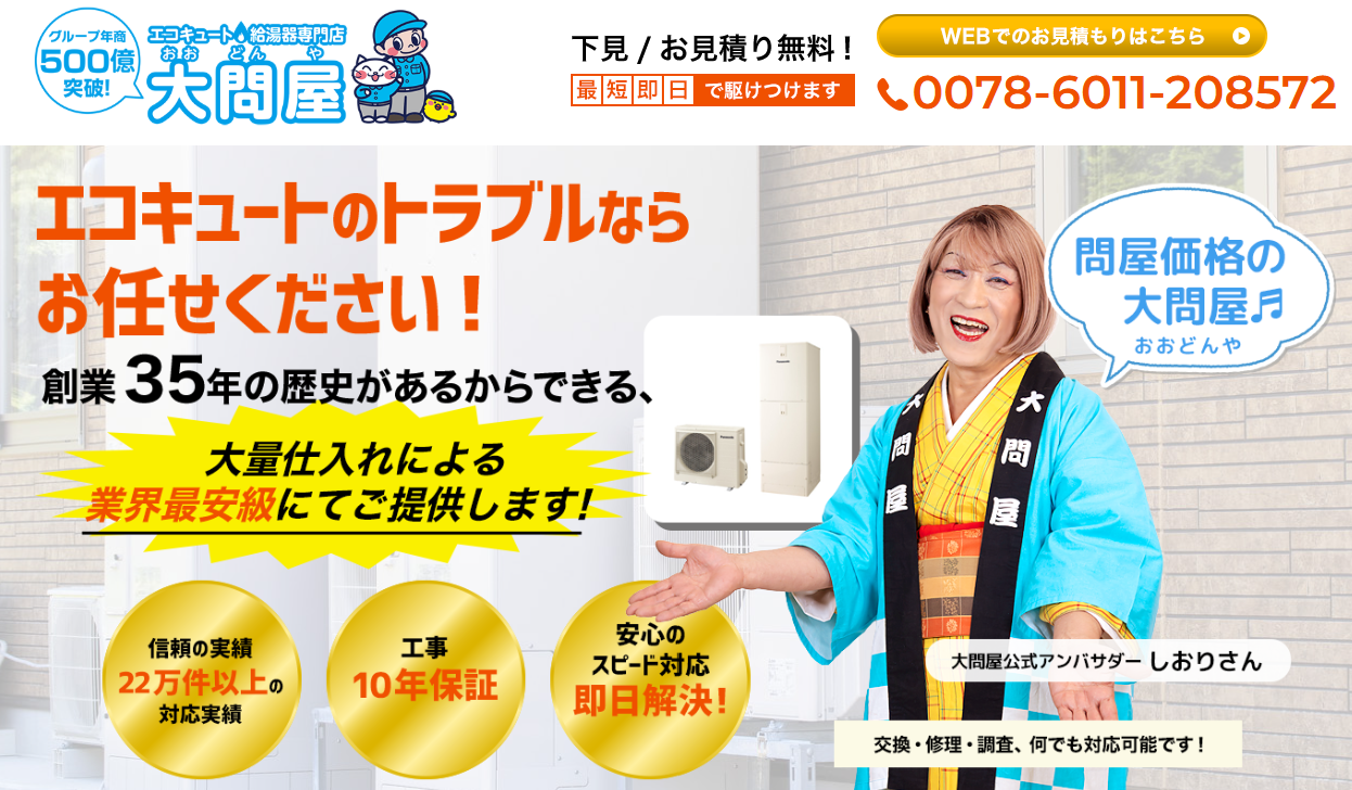 (株)ミズテックの「給湯器駆け付け隊」はガス・エコキュートの給湯器交換・設置専門店で、修理もできますので、まず修理を検討したい人に向いています。